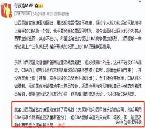 此消息引发外界的热议,特别是结合到此前山西加盟西甲球队,他获得了2超7位数全额保护合同,如今山西通过买断原俱乐部合同的方式,重新签约迪亚洛,毫无疑问是除了支付正常CBA标准合同外,还需要支付足额的买断费用。